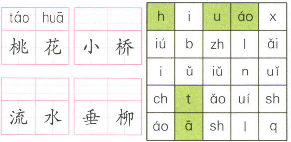 小桥:xiǎo qiáo;流水:liú shuǐ;垂柳:chuí liǔ