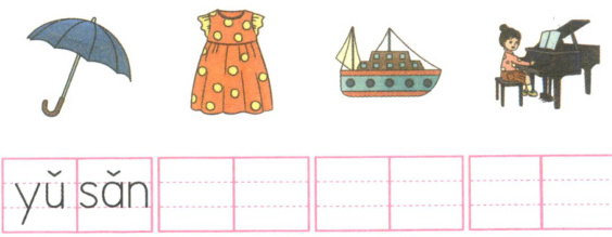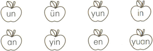 一 我要给苹果涂色,是整体认读音节的涂红色,是韵母的涂黄色。