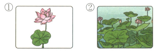 六 我 知 道 下 面 哪 幅 图 表 现 了 “莲 叶 何 tián tián de jǐng xiàng 。(