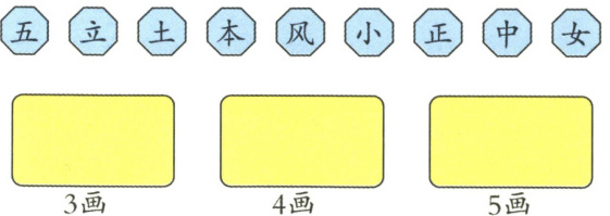 3画: 土,小,女; 4画:五,风,中;5画:立,本,正。