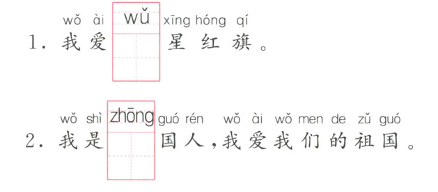 (1) 我 国 的 国 旗 是 红 色 的 , 上 面 一 共 有