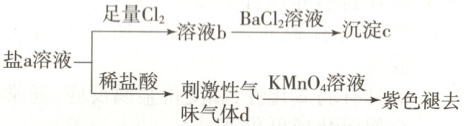 D.气体d因漂白性使$\mathrm{KMnO_4}$溶液褪色
