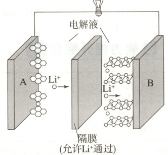 )A.放电时A极电极反应式为:${Li_xC6 - xe^- \xlongequal{} 6C + xLi^+}$