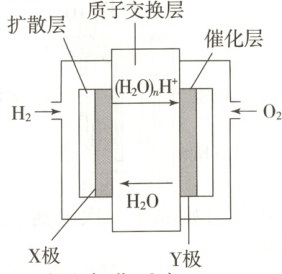 D.工作过程中,质子(${H^+}$)从X极透过质子交换层移动到Y极