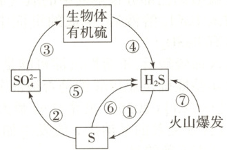 6.A[提示:A.S元素在自然界中既有S单质,也有$\mathrm{H_2S}$、$\mathrm{SO_4^{2-}}$、有机硫等,故硫元素在自然界既有游离态又有化合态,A错误;B.燃煤中含有硫元素,煤燃烧时其中的硫元素转变为$\mathrm{SO_2}$,$\mathrm{SO_2}$可与加入的生石灰、$\mathrm{O_2}$反应产生$\mathrm{CaSO_4}$,可减少大气中硫元素的含量,达到脱硫的目的,B正确;C.S原子最外层有6个电子,原子半径比较大,因而S的氧化性比较弱,在和变价金属反应时,通常将变价金属氧化成低价态,C正确;D.硫化氢溶于水得到氢硫酸,氢硫酸是二元弱酸,具有酸的通性,能与碱、碱性氧化物反应产生盐和水,D正确。]
