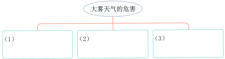 4. [思维导图]根据文章内容,请用简洁的语言概括出大雾天气的危害。(3分)