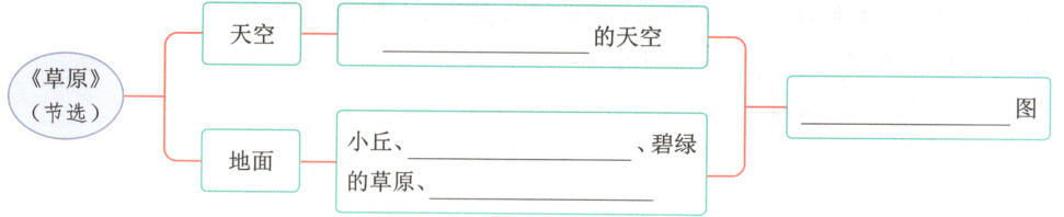 1. 明朗 移动的羊群 静立的骏马和大牛 草原风光(每空1分)