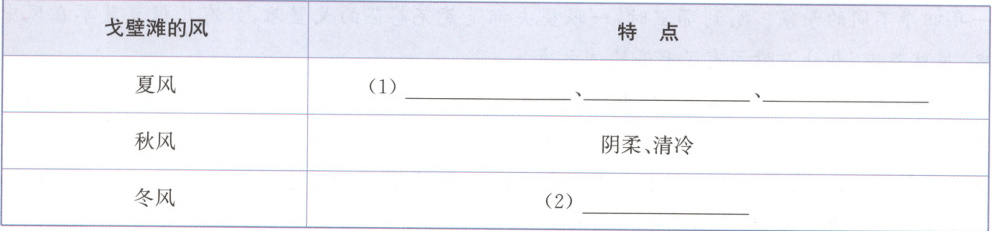 1.戈壁滩的风与众不同,请概括风的特点。(4分)
