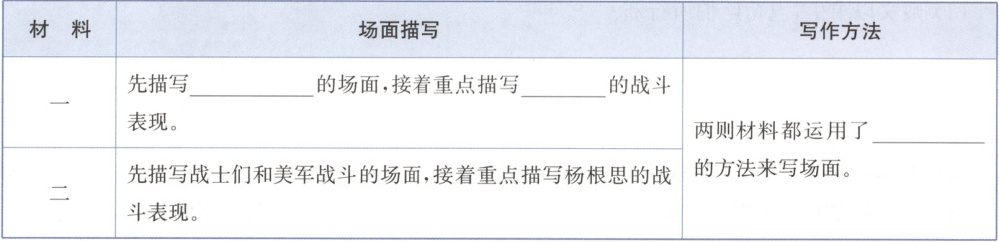 (2)联系材料二,发挥想象,用点面结合的手法写出战士们和美军战斗的场面。(3分)
