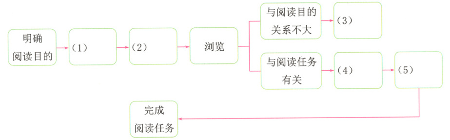 2. [阅读要素]为了提高阅读效率,我们可以带着目的阅读。请将相应序号填入下面的思维导图中,总结阅读经验。(5分)