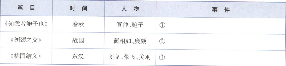 (2) 鲍子是一个知人善用、能站在他人的角度思考、为了国家能顾全大局的人。(2分) 3. 知我者鲍子也 不同事例(每空1分) 4.