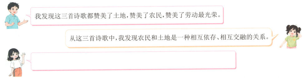 。老师:同学们说得太好了!这首现代诗不仅展现了自然和人类的和谐共生,同时也象征着勤劳和奋斗,预示着丰收的希望!