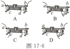 7. 当滑动变阻器的滑片向b端移动时,如图17-6所示四种接法中,变阻器接入电路的阻值变大的是()