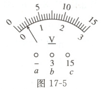 6. 小全同学在用电压表测量电压时,电压表的“-”接线柱已接入电路,他先用0~15 V测量范围进行试触,指针位置如图17-5所示,则她下一步的操作应该是()