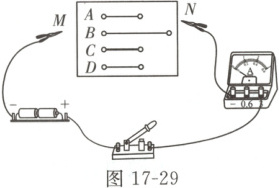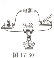 (4)如图17-30所示,把白炽灯中的钨丝连入电路,闭合开关后,用酒精灯给钨丝加热,可以观察到灯泡变暗。