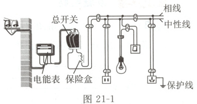 2. 如图21-3所示为某家庭电路实物布线图,该电路各处连接均正确。下列关于该电路的说法正确的是 (