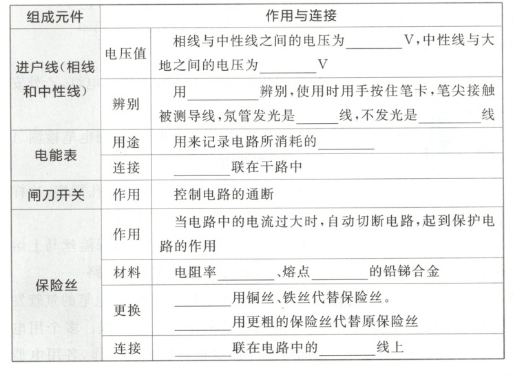 1. 220 0 测电笔 相 中性 电能 串 大 低 不能 不能 串 相 电流 漏电 并 串 相 中性 相 保护