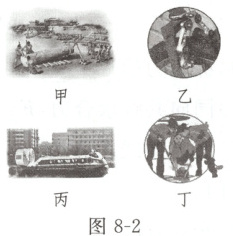 4. 【教材图片题】如图8-2所示四个实例中为了增大摩擦的是 (