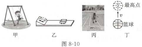例8 (2025 泸州) 各种自然现象之间的联系是科学家们关心的问题。如图 8-10 所示, 下列关于力与运动的关系说法正确的是 (