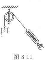 例9 静止状态 (2025 江西) 如图 8-11 所示, 用手拉着弹簧测力计, 使钩码处于静止状态。下列说法正确的是 (