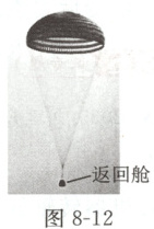 例10 竖直匀速运动 (2024 武汉) 2024 年 4 月 30 日, 神舟十七号载人飞船返回舱在东风着陆场成功着陆。如图 8-12 所示, 返回舱在落地前的某段时间内沿竖直方向匀速下落, 若降落伞和返回舱受到的重力分别为 $G_1$ 和 $G_2$, 降落伞对返回舱的拉力为 $F$, 空气对返回舱的阻力为 $f$, 则下列关系式正确的是 (