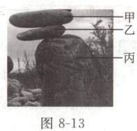 例12 叠加模型 (2025 凉山州) 西昌湿地公园内有由甲、乙、丙三块石头堆叠而成的艺术作品 (如图 8-13 所示), 下列说法中正确的是 (