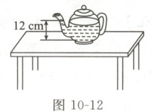茶壶几乎是每家必备的常用器具。学习压强知识后,小淇想对家中的茶壶进行相关研究。她测得茶壶的质量为 $600\ g$,底面积为 $100\ cm^2$,装入适量水后将它放在水平桌面上,测得水的深度如图 10 - 12 所示。请你接着她的探究完成如下任务。($\rho_{ 水} = 1.0×10^3\ kg/m^3$,$g$ 取 $10\ N/kg$)