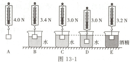 越大,物体所受浮力越大。(2)分析图A、C、E可知,浮力大小与