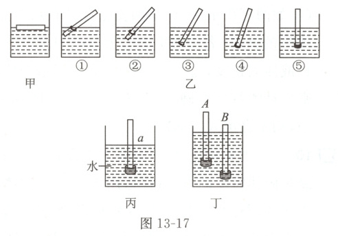 (1) 如图 13 - 17 甲所示,小明将直杆放入水中,直杆倾倒后漂浮在水面上,此时直杆受到的浮力 _______ 重力。