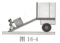4. 如图16-4所示,工人师傅用沿斜面向上的1000 N的推力,将重为2000 N的物体从斜面底端匀速推至斜面顶端。已知斜面长4 m、高1.5 m,则此过程中工人做的有用功为J,该斜面的机械效率为。使用斜面可以(选填“省力”或“省功”)。