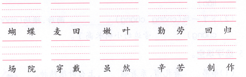 1. hú dié mài tián nèn yè qín láo