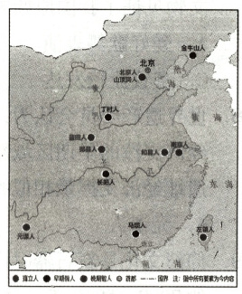 1. “左图右史”四字道出了图与史的关系。图片资料具有直观、形象的特点,极大地充实、深化和拓展了历史知识。如图是小史同学搜集的一幅中国主要古人类遗址分布图。从图中可以提取的信息是 (