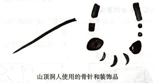 山顶洞人使用的骨针和装饰品