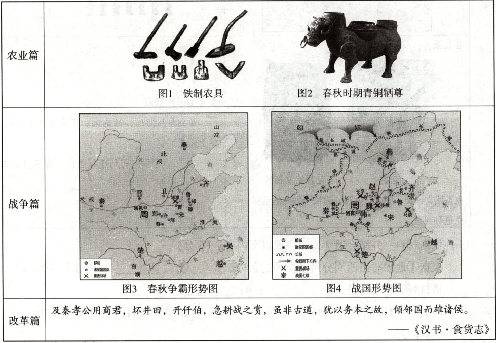 (1)根据农业篇指出,春秋战国时期我国农业生产领域的重要变革是什么?(1分)