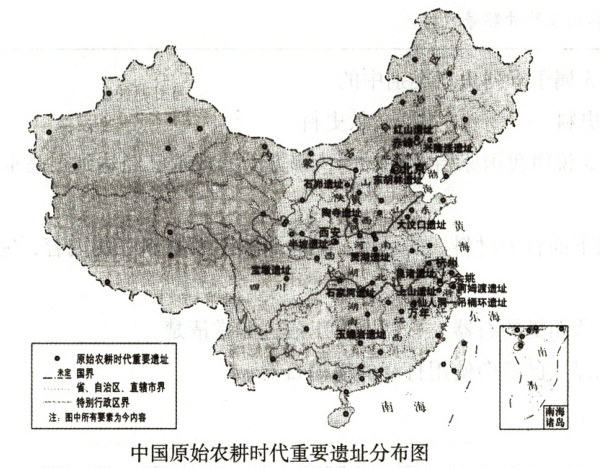 (3) 根据材料三,概括这一时期我国人类遗址的分布特点。结合所学知识,指出这一时期我国人类社会发展处于哪一阶段。
