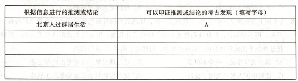 $\hline $根据信息进行的推测或结论 & 可以印证推测或结论的考古发现(填写字母) \\