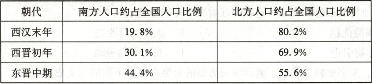 5. 下表是部分朝代南方与北方人口比例统计表,这些数据可以用来说明 (