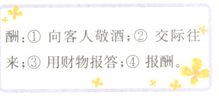 3. “酬”字的解释如右图,请给加点字选择正确的意思。(填序号)