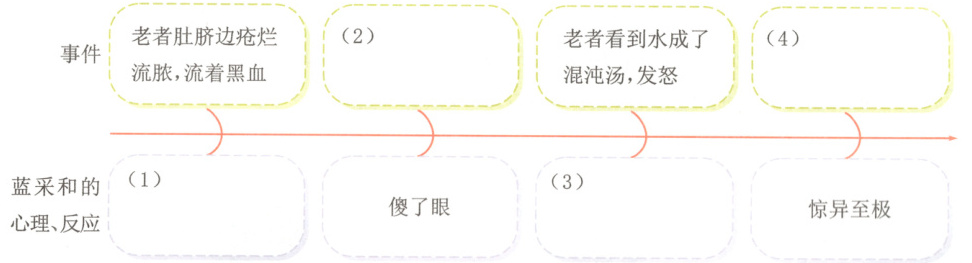 2. 思维导图 阅读故事,照样子用简短的话梳理事件和蓝采和的心理、反应。(4分)