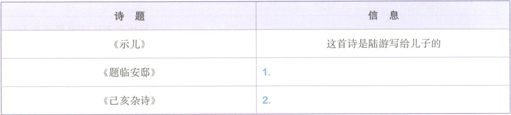 四、从诗题中我们可以获得很多信息,请根据提示完成表格。