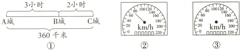 8. 一辆车从A城经B城开往C城(如图①),从A城到B城的平均速度如图②所示,这辆车从B城到C城的平均速度应是(
