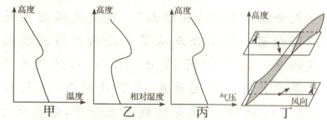 37. 甲、乙、丙、丁四地气象要素的垂直变化,可能出现的是(