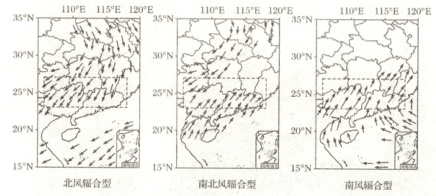 43. 与北风辐合型相比,南风辐合型关键区域降水更多。下列解释合理的是(