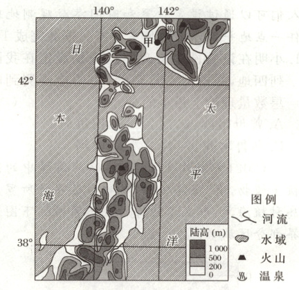 解析:本题考查地形特征描述。地形特征可从地形类型、地势高低起伏、海岸线特征、特殊地貌等角度描述。由图的海拔高度可知,该区域地形以山地、丘陵为主,平原面积小;地势起伏大;海岸线曲折。