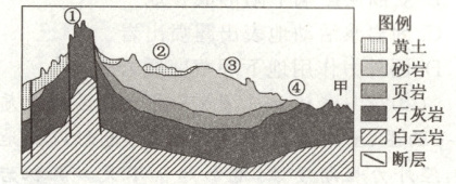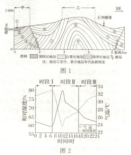 (1)分析图1中甲、乙两区域地质构造和地层年代特征,并据此判断哪个区域遭受的地表剥蚀作用更强烈。