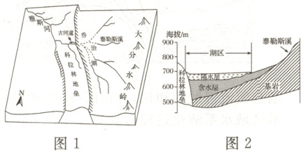 (1)题,古河道原为古雅斯河的上游河段,河流自东向西流,经过河流侵蚀、沉积形成古雅斯河道;后由于太平洋板块和印度洋板块碰撞挤压,地壳运动,发生地壳断裂抬升,形成科拉林地垒;地垒的形成造成古雅斯河上游河段断流,水分蒸发,形成古河道。 第