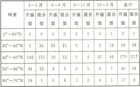 (2023·湖南卷)融雪洪水灾害由大量的积雪快速融化引起,可分为雨雪混合型(简称“混合型”)洪水灾害和升温融雪型(简称“升温型”)洪水灾害,融雪洪水中常夹杂着冰凌和融冰。下表示意1900~2020年北半球融雪洪水灾害频次。据此完成2~4题。