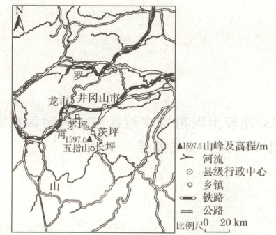 (2021·湖北卷)党的十八大以来,革命老区井冈山贯彻新发展理念,加强通信网络建设,推动经济高质量发展。随着网络全覆盖,农民通过开网店,直播卖货,足不出户就可将农林土特产品迅速销往全国各地。下图示意井冈山地理概况。据此完成31~33题。