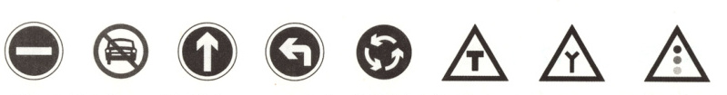 (3)在从左数的第3个标志牌下面画“√”,将右边3个标志牌圈起来。