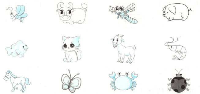 1.涂红色的有蜜蜂、蜻蜓、蝴蝶、七星瓢虫